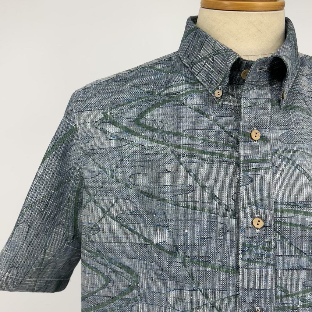 着物アロハシャツ グレー・緑の模様 XL22-65