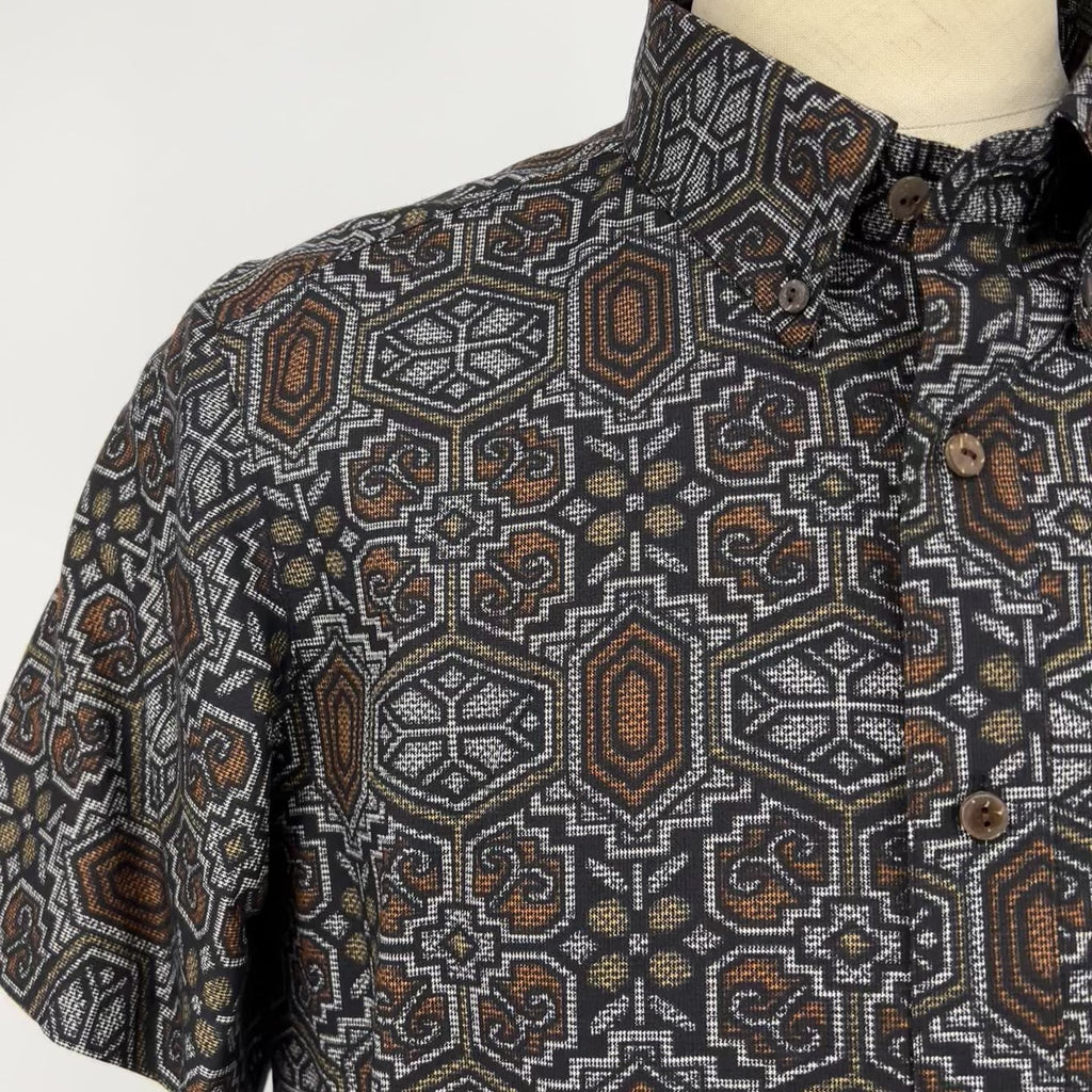 着物アロハシャツ グレー・細かな文様 XL22-131